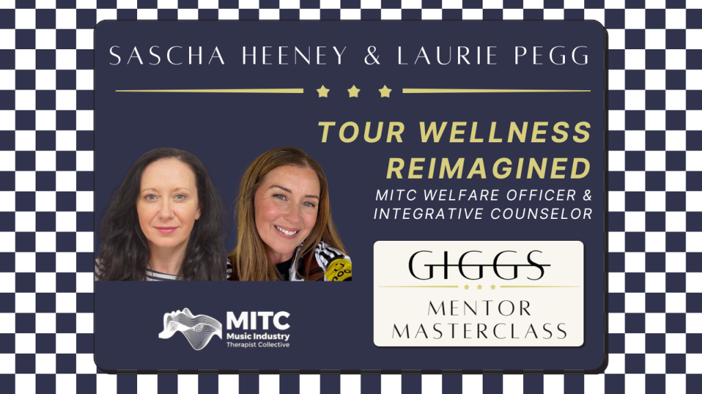 MITC’s Touring Welfare Officer, Sascha Heeney, and Integrative Counselor, Laurie Pegg, join Giggs, the only social networking & job posting platform for the Touring & Music Industry, in a BRAND NEW Mentor Masterclass.